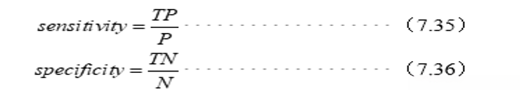 (2)灵敏性和特效性 敏感度与特异性中,敏感度即真正类率(True Positive Rate, TPR),指的是分类器识别出的正例在全部正例中的比例。而特异性涉及真负例率(True Negative Rate, TNR),指的是正确识别的负样本占总负样本的比例