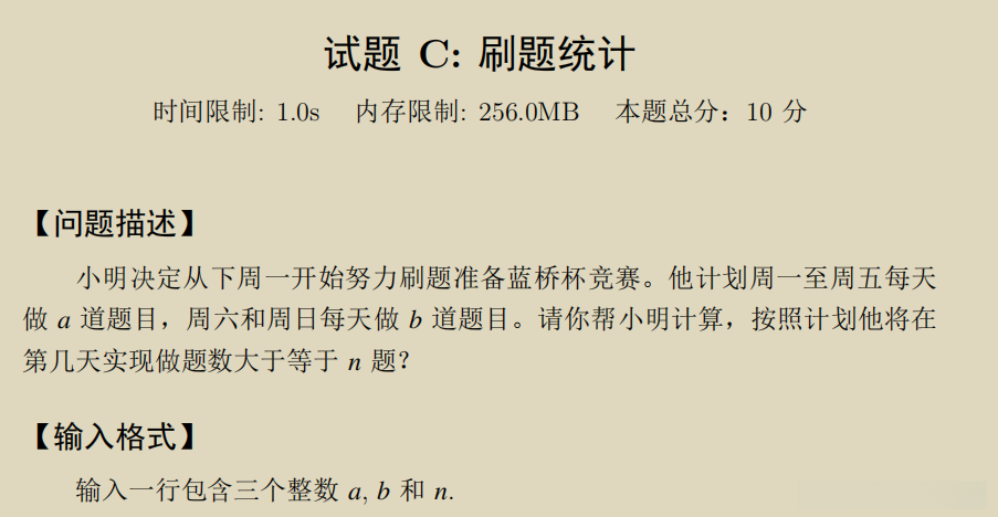 7天做5a+2b道题,算n中有几个5a+2b,再算还需要几天