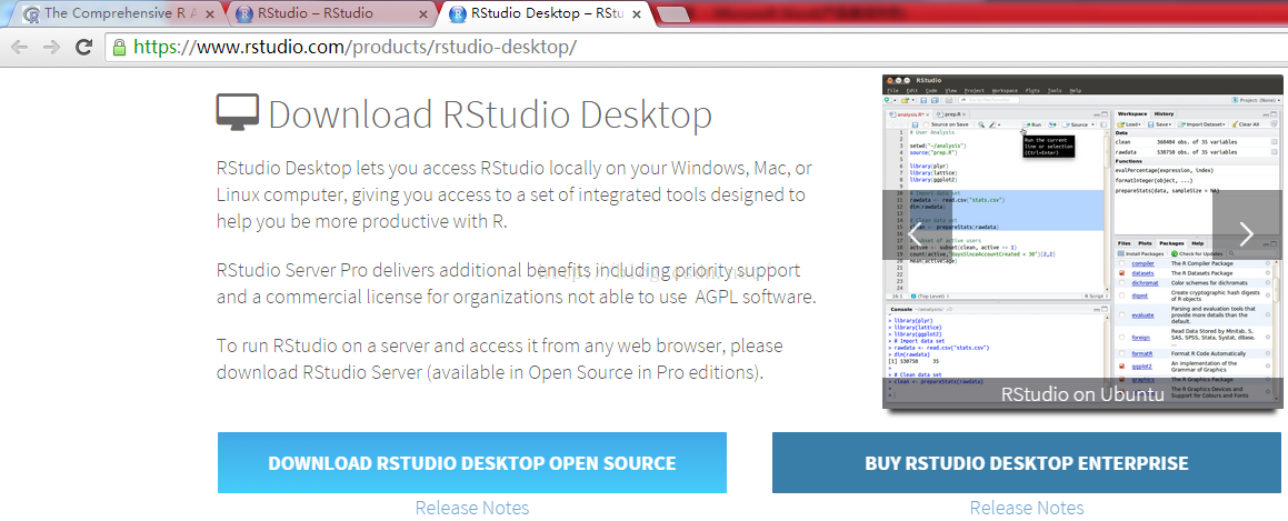 注意:在安裝 RStudio 之前必须安裝 R 2.11.1 或更高版本。这是一个專為 R 語言設計的集成開源發酵環境 IDE 和 R 的用戶 interface