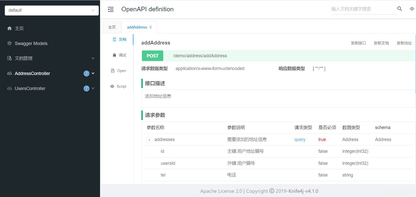 @Operation(summary = "addAddress", description = "添加地址信息")