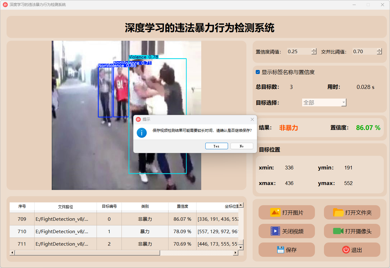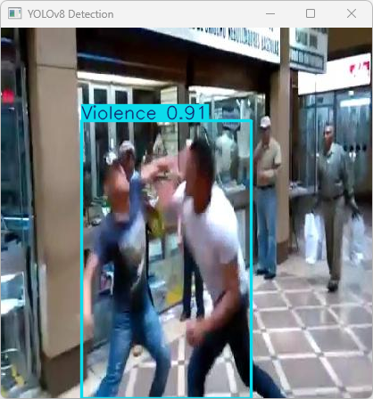 此YOLOv8模型精准识别出画面中的暴力场景,并且各处理环节运行迅速以满足实时监控需求