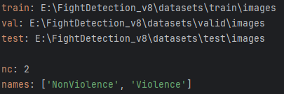 training_data_set: E:\FightDetection_v8\datasets\train\下的图像文件夹 训练数据集的具体存储位置 validation_data_set: E:\FightDetection_v8\datasets\Validation\下的图像文件夹 验证数据集的具体存储位置 test_data_set: E:\FightDetection_v8\datasets\Test\下的图像文件夹 测试数据集的具体存储位置