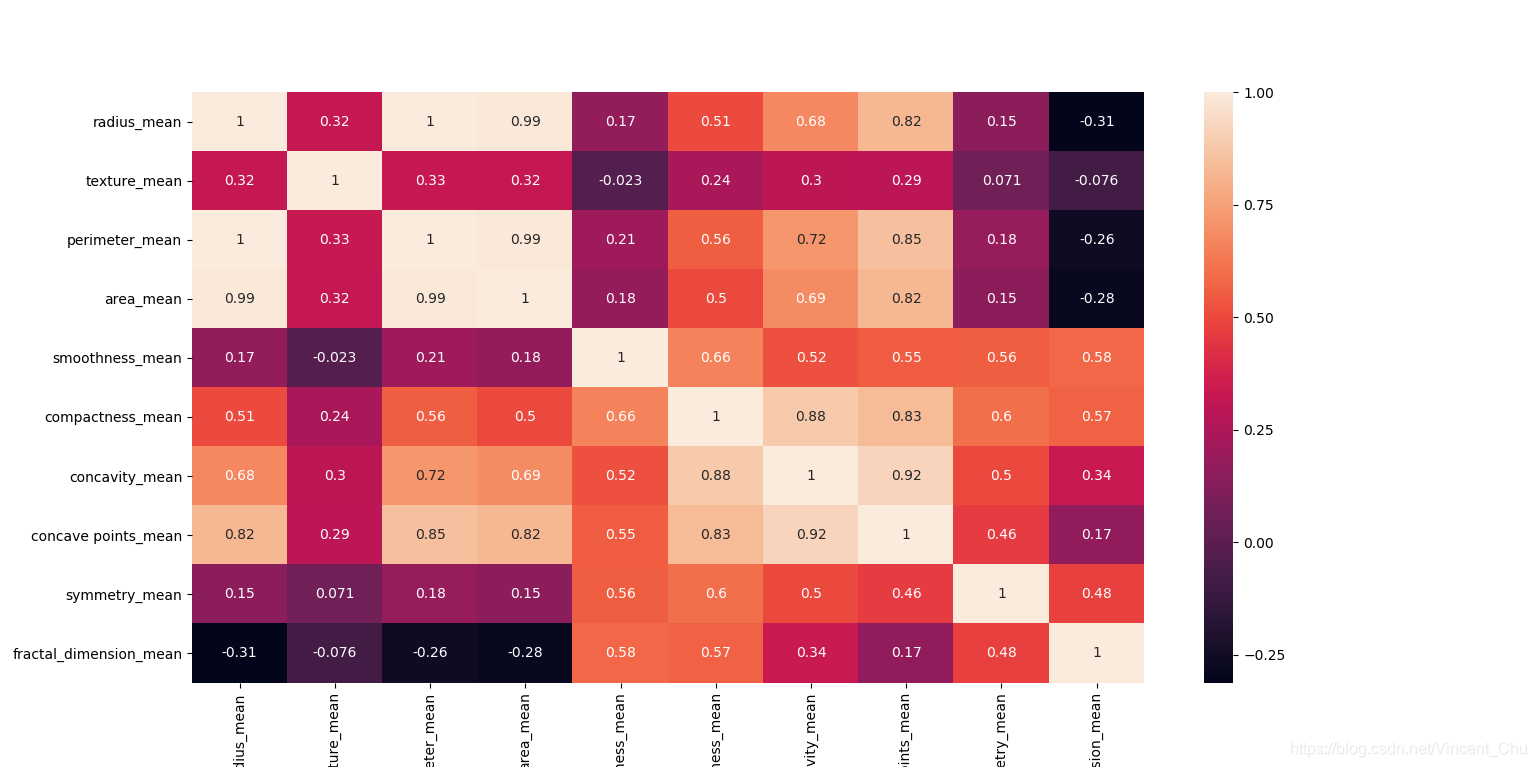 数据不包含缺失值, 由于包含平均值mean的数据可反应数据的一般情况, 故使用包含平均值的10列进行分析, diagnose列用数字0代表良性, 数字1代表恶性, 作为数据的标签.