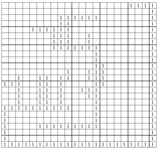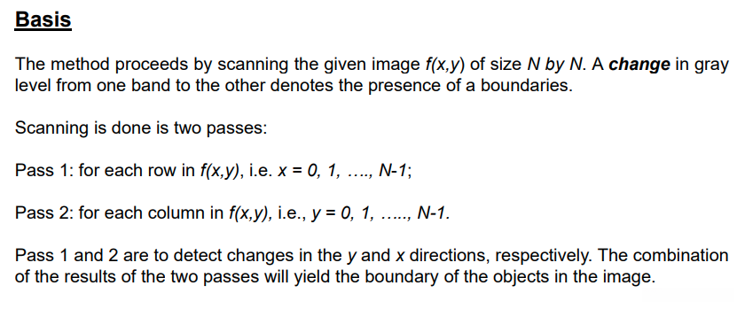 The desired image, consisting of the points on the boundary of objects different (as defined by T) from the background, is obtained by using the following relation for x, y = 0, 1, ...., N-1: