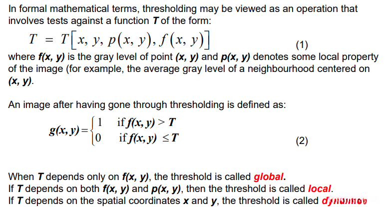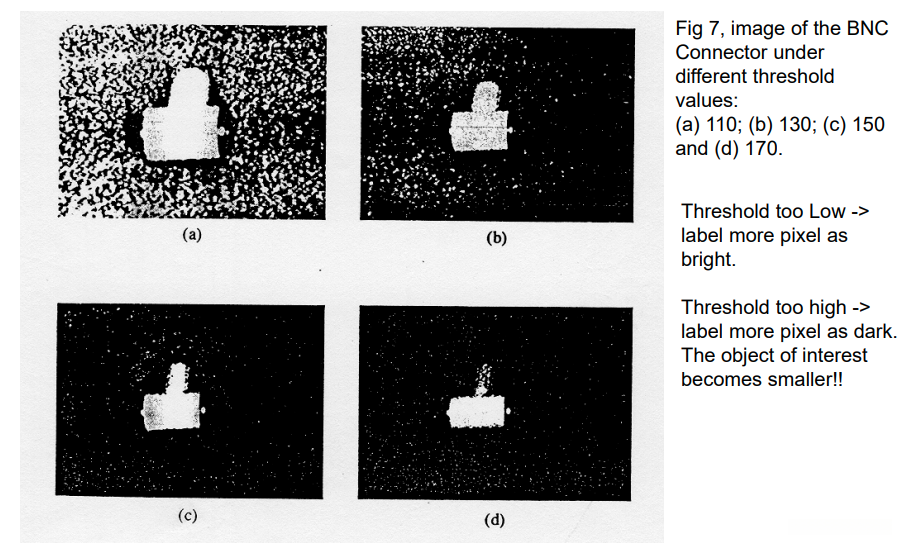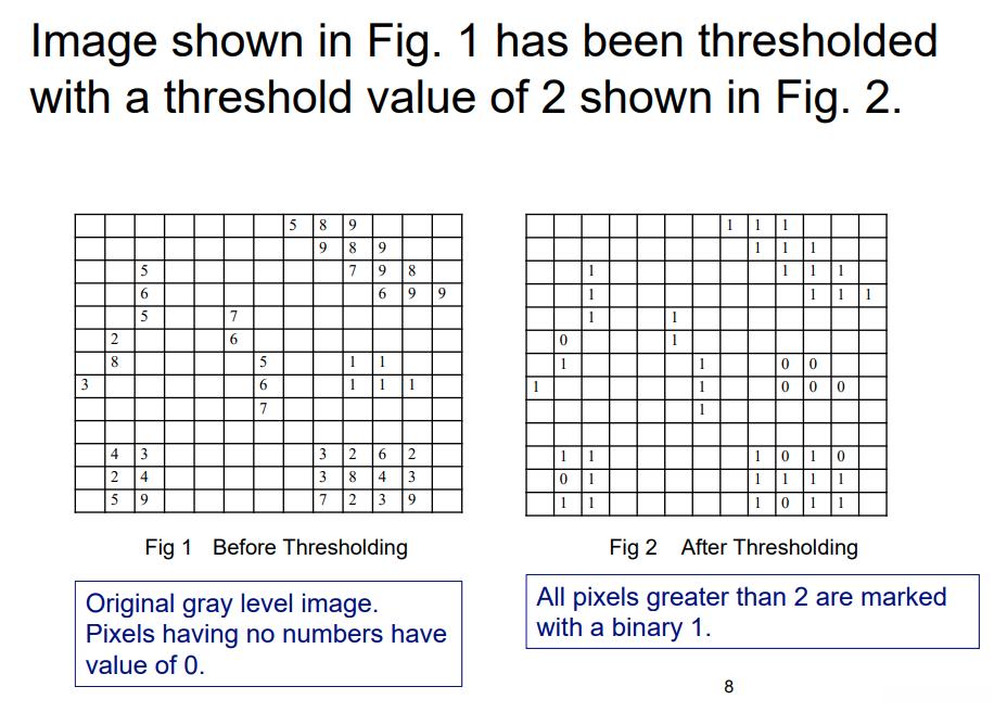 2.Those pixels having grey value higher than the Threshold value are given the value 1. \Those pixels having grey value lower than the Threshold value are given the value 0.