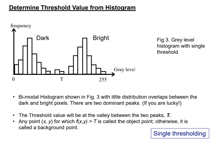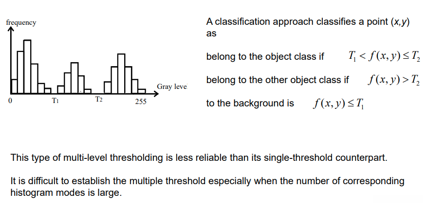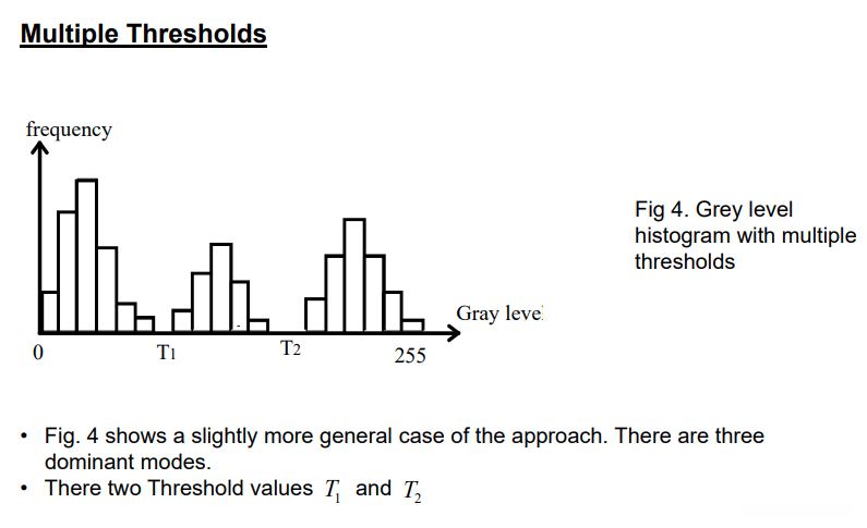 This is a simple technique and is useful to segment an image by dividing the gray levels into bands and use thresholds to determine regions or to obtain object boundaries.