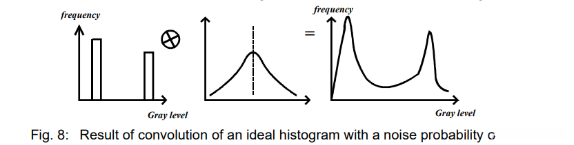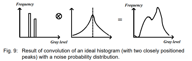 If we have a black object on a white background, the histogram will be bi-modal. With the influence of measurement noise, the histogram will be affected as shown in Fig. 8.