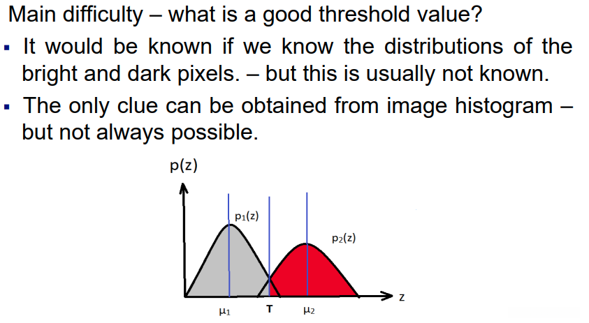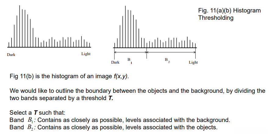 This will make the segmentation with a single threshold value very difficult. This simple illustration shows that the reflective nature of objects and background could be such that they are separable.