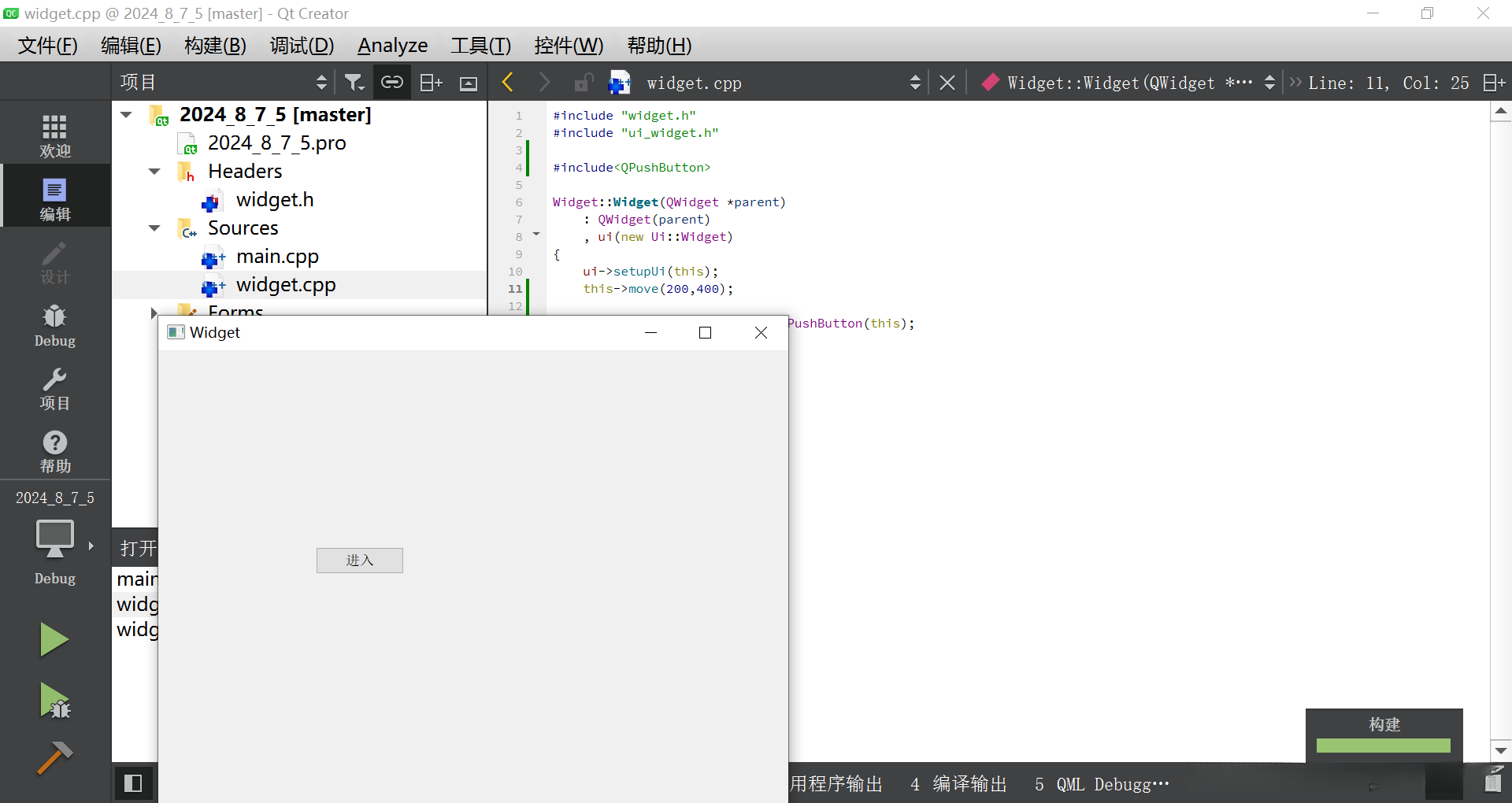 当我们设置一个Qt按钮,其坐标位置时默认的,在左上角。