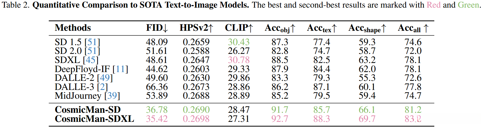 比较结果表明通过实验对比分析表明CosmicMan-HQ数据集的有效性 -