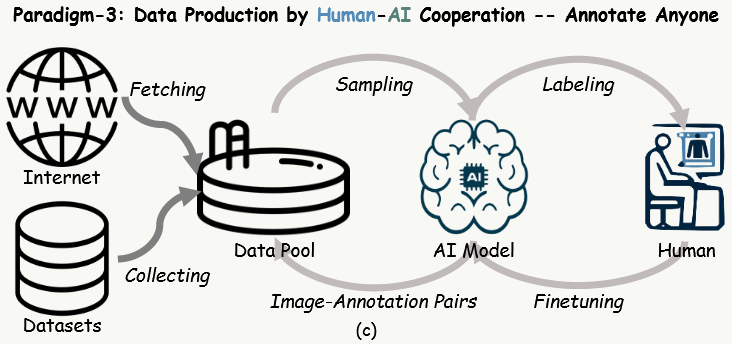 - 闭环标注 (三个实体:数据池、AI 和人类标注员)
