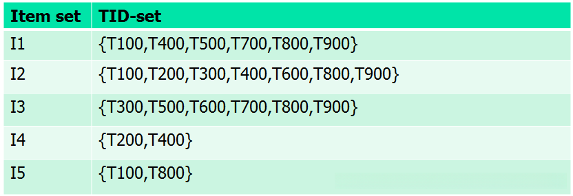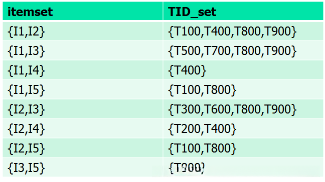 数据用项-TID集格式({itemset:TID})表示,这种格式称为垂直数据格式。