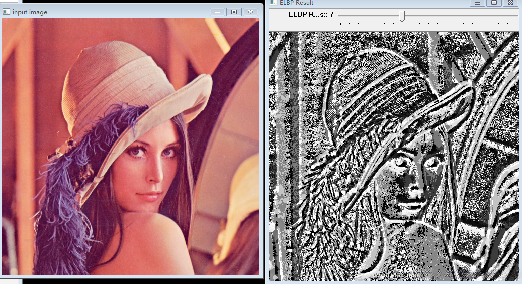 createTrackbar("ELBP Radius:", "ELBP Result", ¤t_radius, max_count, ELBP_Demo);
