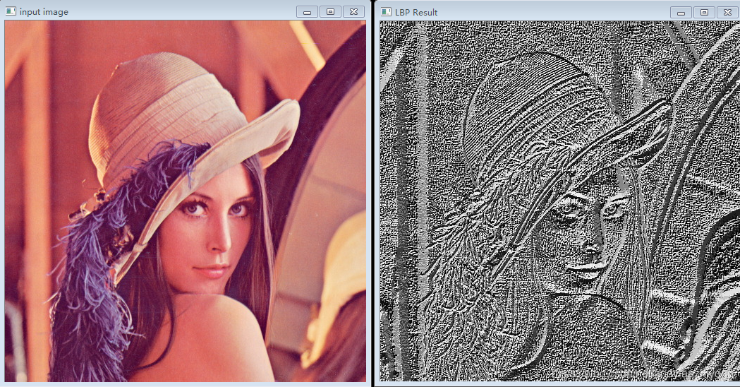// 基本LBP演示,注意图片大小:3*3的算子,除去边框