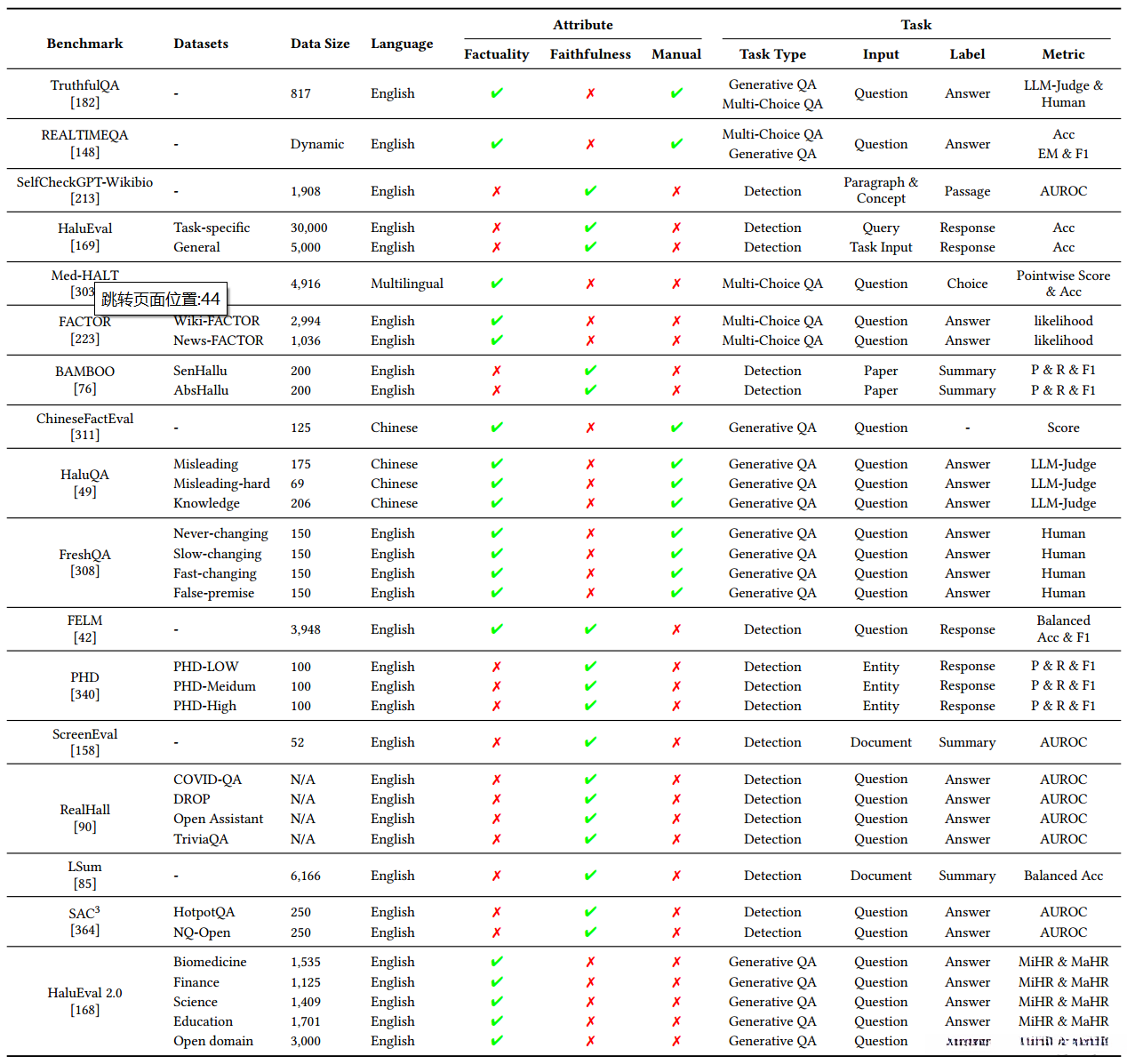 - 事实性幻觉检测,旨在识别模型输出中的事实不准确性。