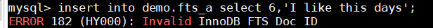 - 并且InnoDB自动会在该列上加入一个名为FTS_DOC_ID_INDEX的unique index索引