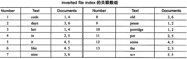 - **如果采用inverted file index的关联数组实现 ,**则其存储的内容如下表所示,可以看到: