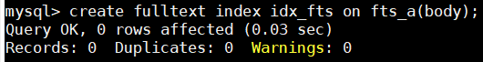 设置完成后, 即可通过查看information_schema数据库下的innodb_ft_index_table表来获取表fts_a中的分词索引信息