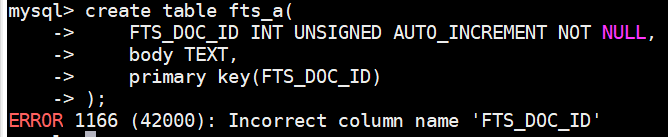 - 当修改FTS_DOC_ID列的类型之后就可以创建成功了