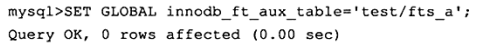 - 例如下面的SQL语句设置查看test数据库下表fts_a的Auxiliary Table: