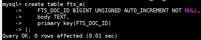 > 2. FTS_DOC_ID INT UNSIGNED AUTO_INCREMENT NOT NULL,