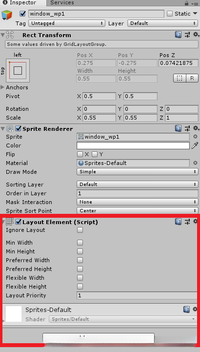 7. 给格子添加component: layout element