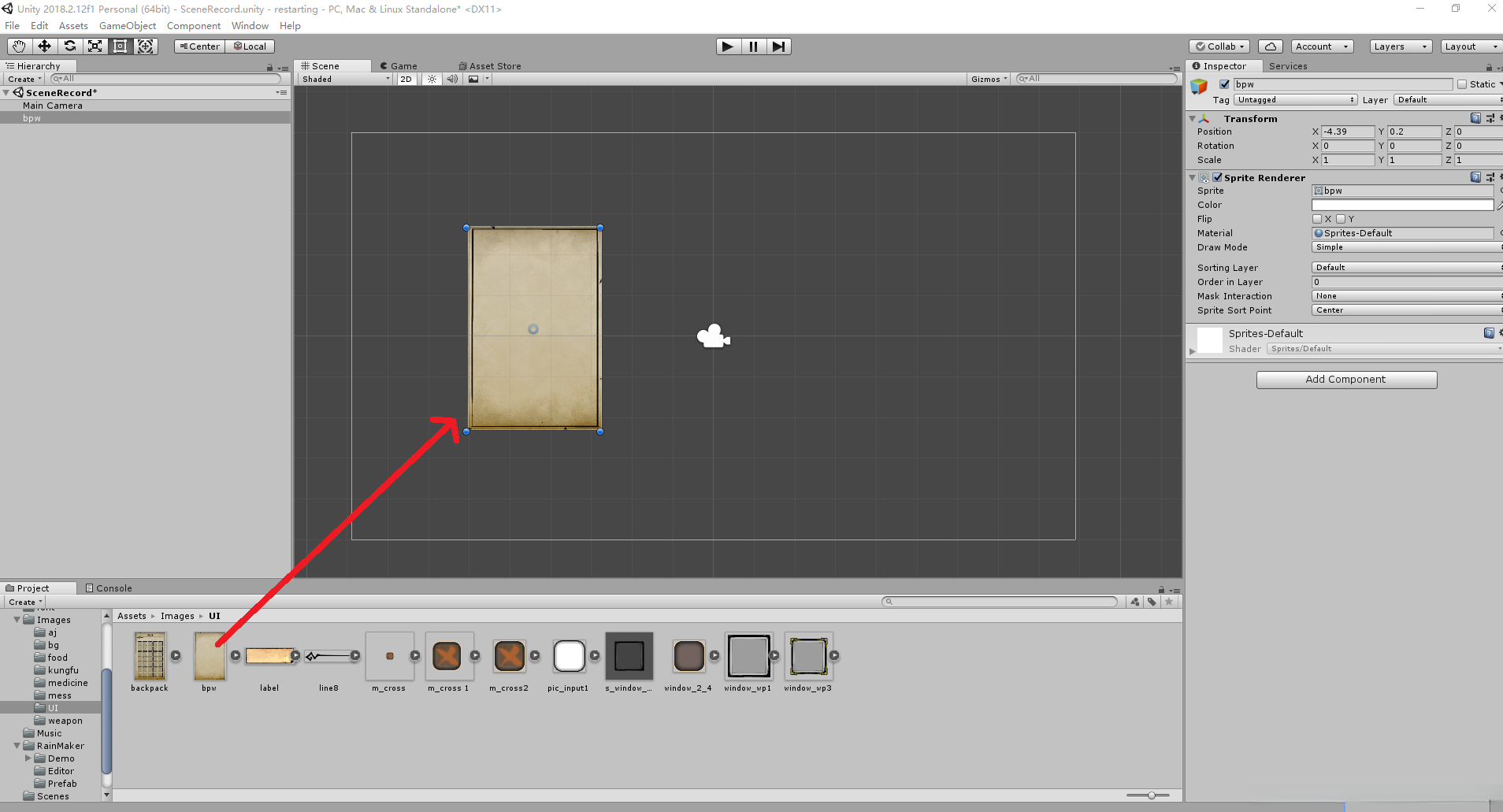 1. 拖拽背包背景至主窗口