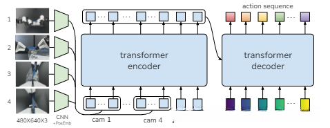 用CVAE目标训练ACT来对有噪声的,包含多模态行为的人类演示进行建模