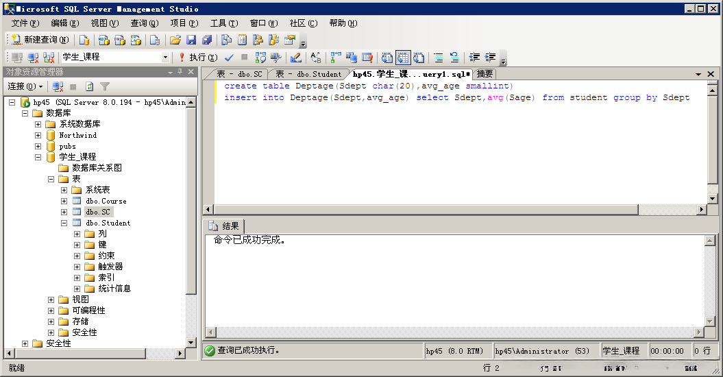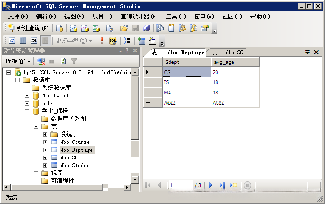 对每一个系,求学生的平均年龄,并把结果存入数据库表Deptage中;