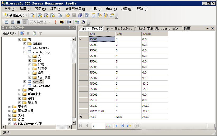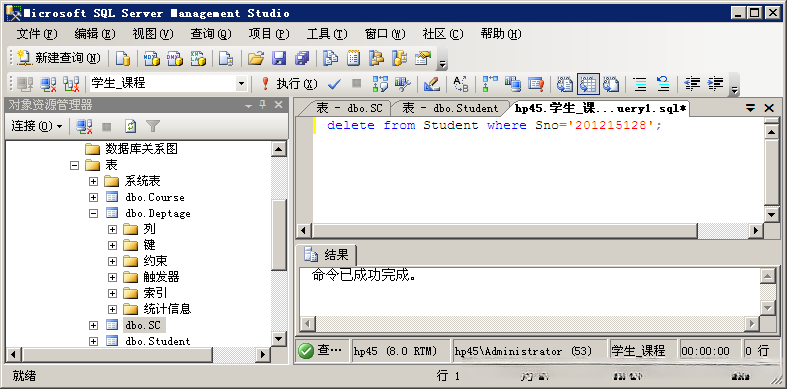 简单的插入删除操作实验,但是还原的问题比较麻烦,在宿舍做的跟实验室做的之间会出错,可能跟SQL的版本问题有关,容易出错。
