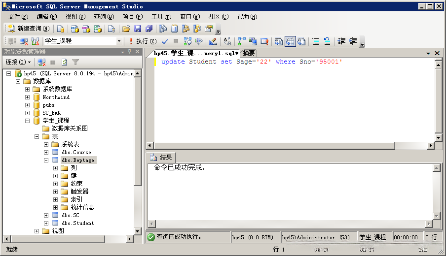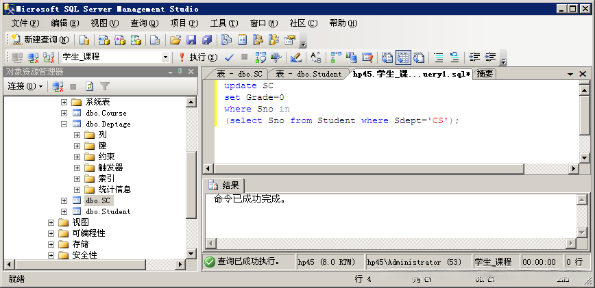 | 实验名称 | 数据库中数据的更新 | 教导教师 | 索剑 | ||||