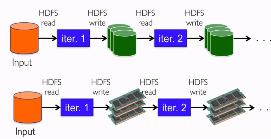 map输出写到磁盘,reduce写到hdfs,磁盘I/O,网络I/O,序列化等压力大
