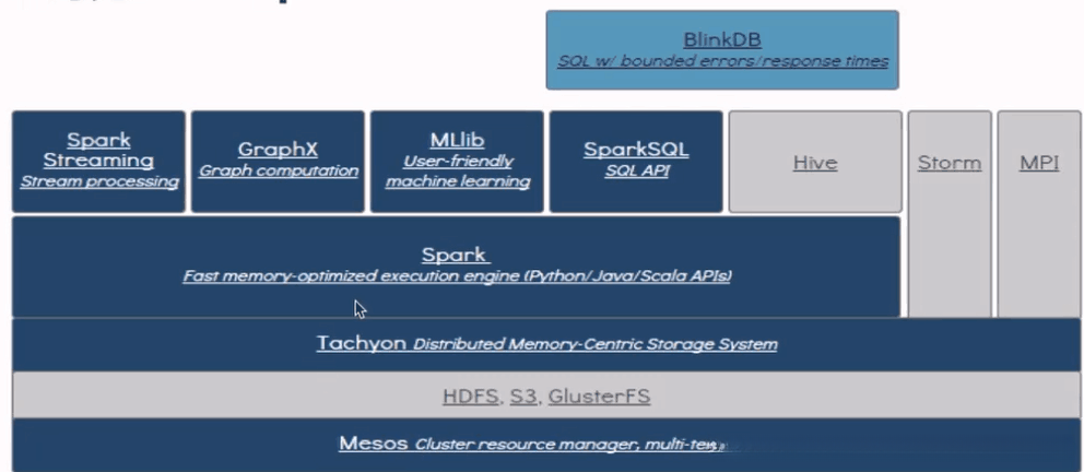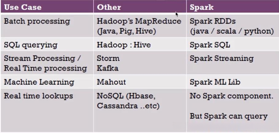 速度快,使用方便,通用性,可以运行在hadoop,Hadoop, Mesos, Kubernetes, standalone, cloud