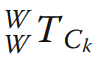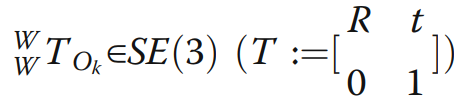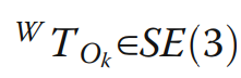 用于表示物体在时间戳k处相对于世界坐标系的姿态。该符号同样代表了从世界坐标系(左下标)至物体坐标系(右上标)的运动。其逆则由