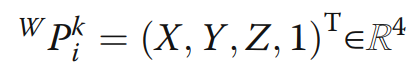 表示物体中心在时间戳 k 处在世界坐标系中的齐次坐标。