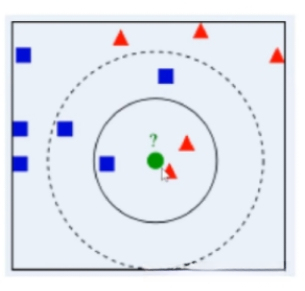 - 分类 :根据周围已知类别的样本来预测新样本的类别。