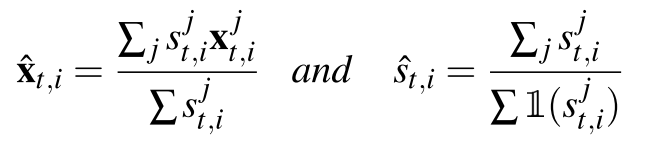 具有最大置信度得分的姿态流作为参考,通过使用dPF(),融合靠近参考姿态流的其他流,形成新的姿态流,即代表姿态流,代表姿态流的关键点2D坐标和置信度得分分别为: