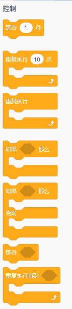 下面通过图片让我们来认识一下Scratch控制模块 包含哪些积木块: