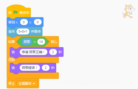 下面我们用个实际例子来表达:5+5=?如果回答等于10那么回答正确,否则回答错误!如下图: