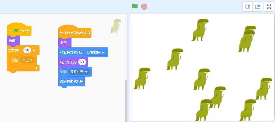 下面我们用个实际例子来演示,如何克隆10个小恐龙: