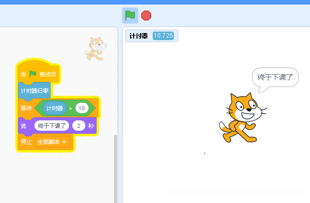 举个例子:田一柠下课要去跳绳,但是还有10秒钟下课。所以就要等待10秒钟以后才能去跳绳,那么代码是如下图: