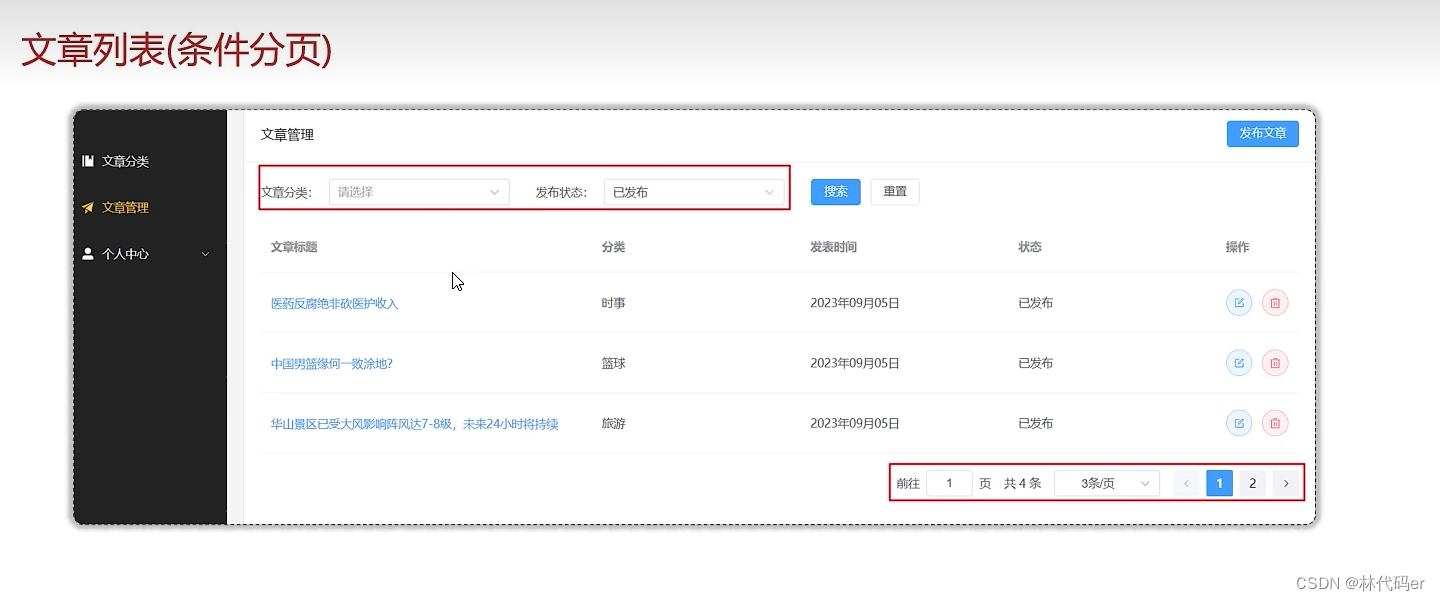 文章列表分页查询(条件分页)