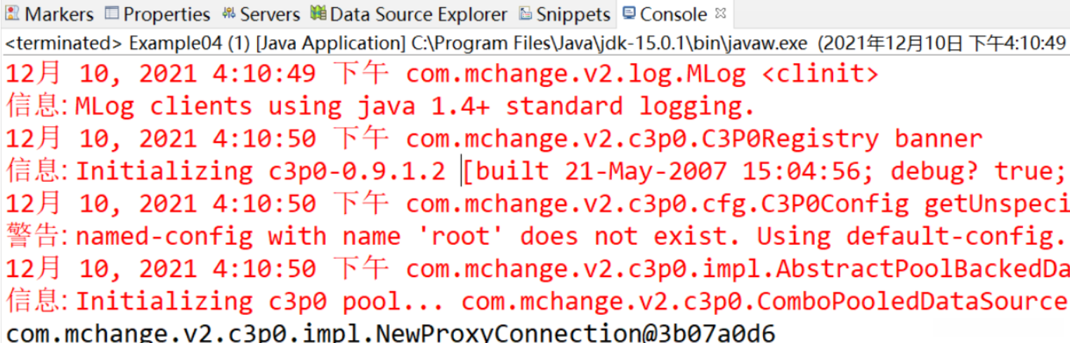 创建一个Example02类,该类中采用了从配量文件中获取数据库的连接信息和数据源的初始化信息的方式