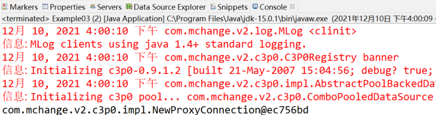 创建Example03,采用C3p0数据手动代码的方式获取Connection对象