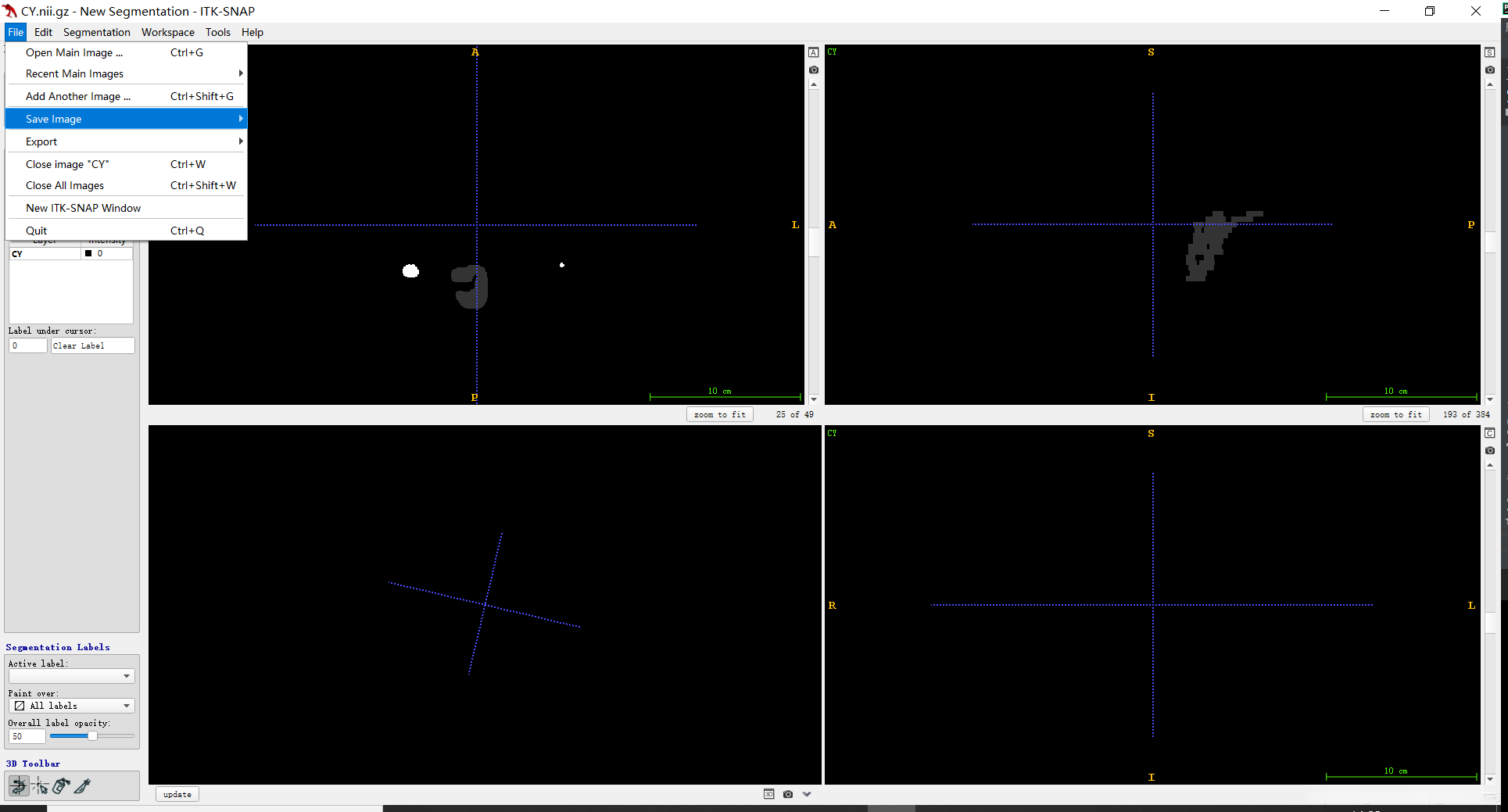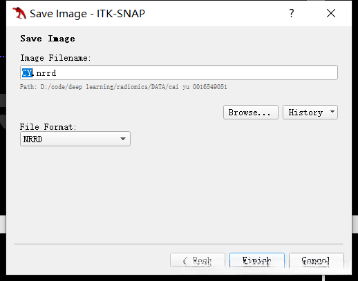 借助ITK-SNAP软件将标注数据从nii格式转换为nrrd格式的操作相对便捷。具体来说,在打开该软件后,默认会显示当前处理的标注数据,并指导用户如何完成这一转换任务。操作流程较为直观:首先启动程序并导入需要处理的niix数据集,在随后弹出的对话框中选择'NRRD'格式选项即可完成数据转换工作。完成上述设置后,在指定路径下自动生成相应存储位置的标注数据文件