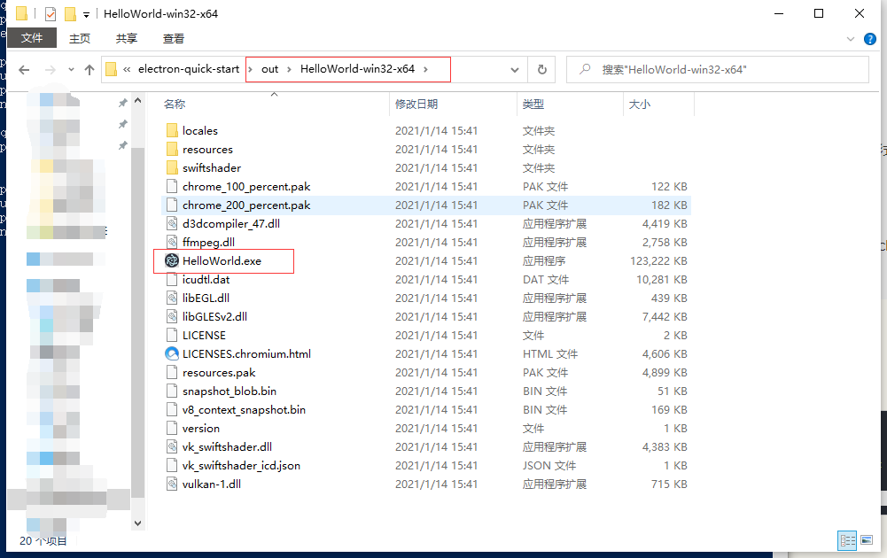 打包后会生成如下文件夹,点击运行HelloWorld.exe,就可以了。