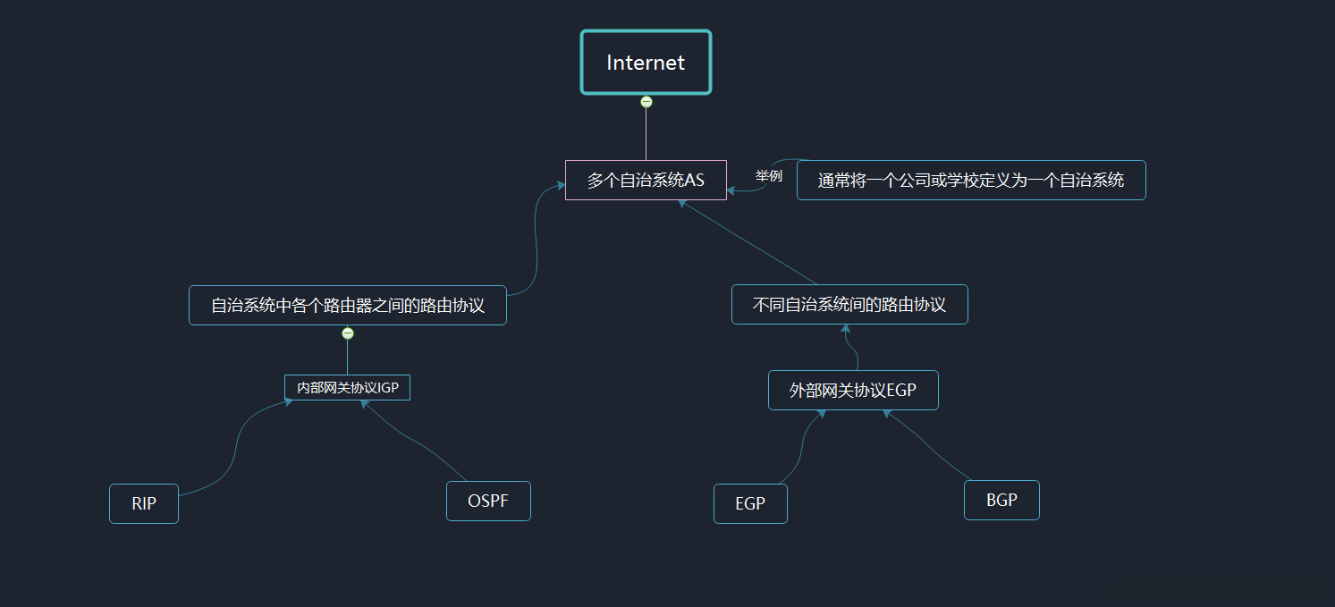 Internet是以一组自治系统(AS,Autonomous System)的方式组织的,在自治系统内部和多个自治系统之间使用不同的路由协议。