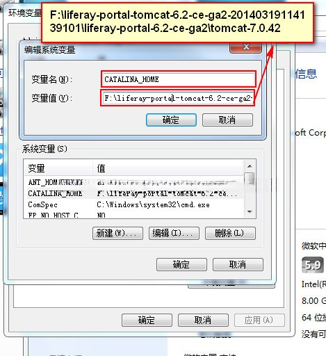 - 配置tomcat服务端口并设置其环境变量为刚才解包得到的Liferay Portal地址