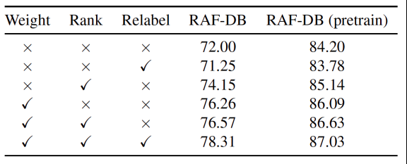 表现的很好,尤其是RAF-DB,达到88.14精度。