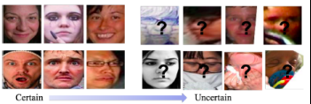 如图所示,从左到右,表情逐渐不确定,现在的大型数据集存在着一定的标注不确性问题。
